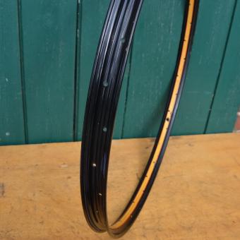Felge 28 x 1,75 (622) für Drahtbereifung, Holzdekor, rot liniert, Breite 35 mm, 36-loch, passend gebohrt für 2mm-Speichen
