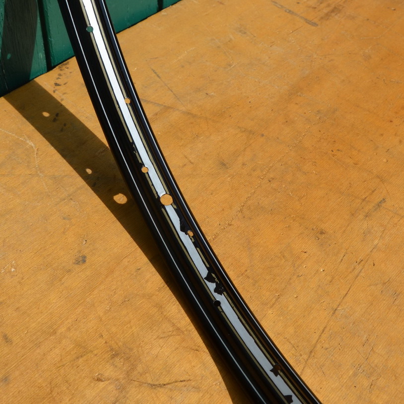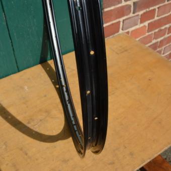 Felge 28 x 1,75 für Drahtbereifung, 36-loch, Breite 36 mm, schwarz, Silber/Gold liniert, NOS, Passend gebohrt für 2mm-Speichen