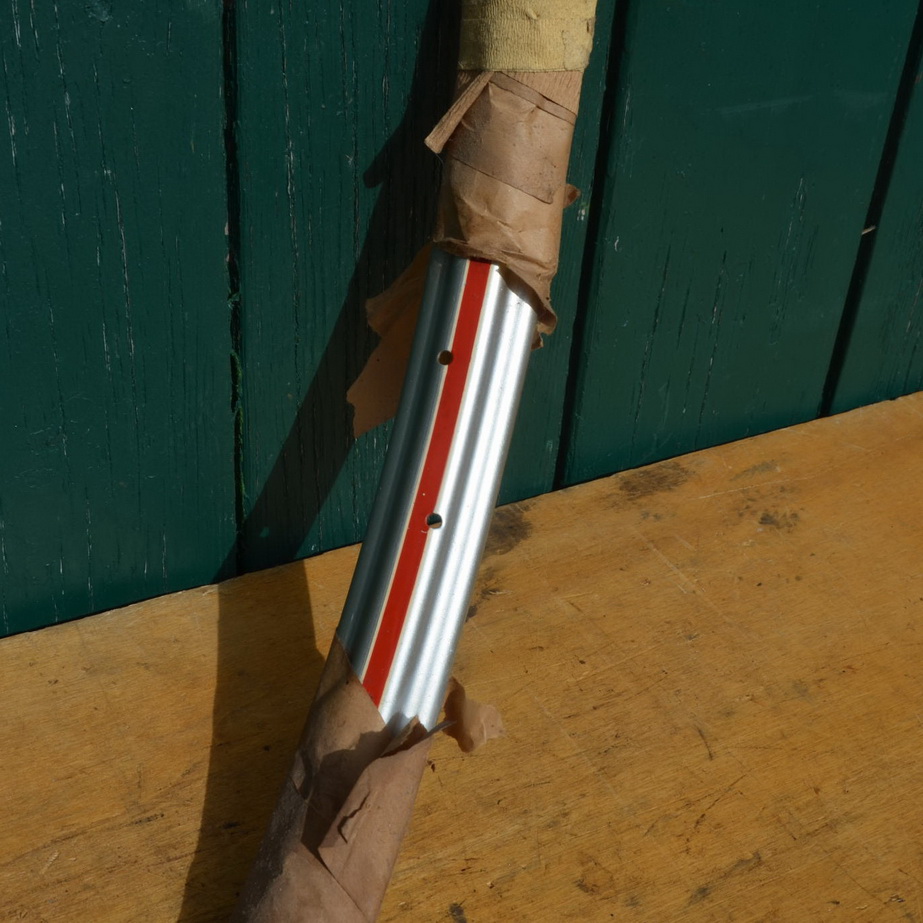 Felge 28 x 1,75, für Drahtbereifung, NOS, Silber, 36-loch, Silber, Linierung rot/weiß, passend gebohrt für 2mm-Speichen