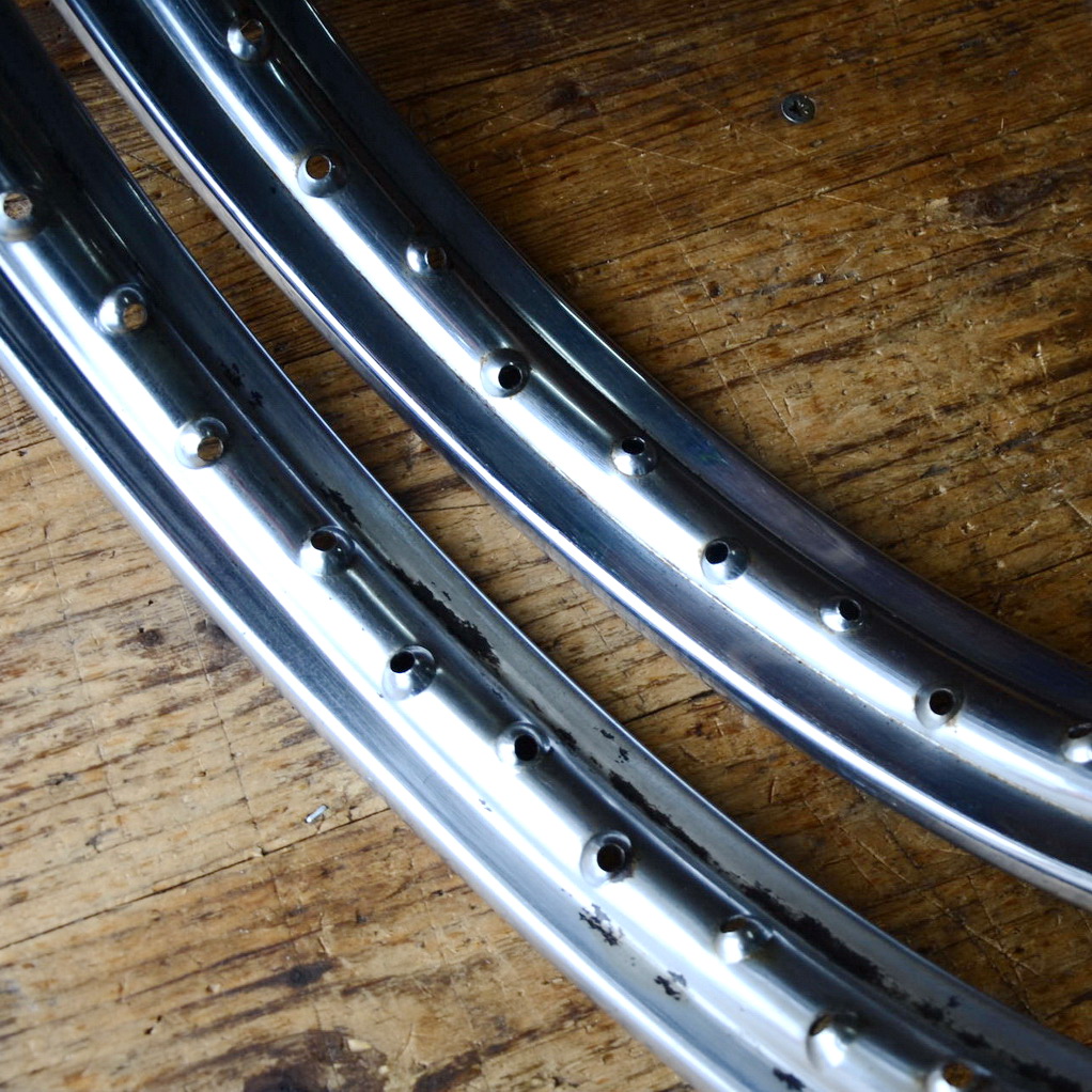 Felgensatz 1.50-17 (21 x 2,75) , 36 Loch, verchromt, gebraucht mit Patina