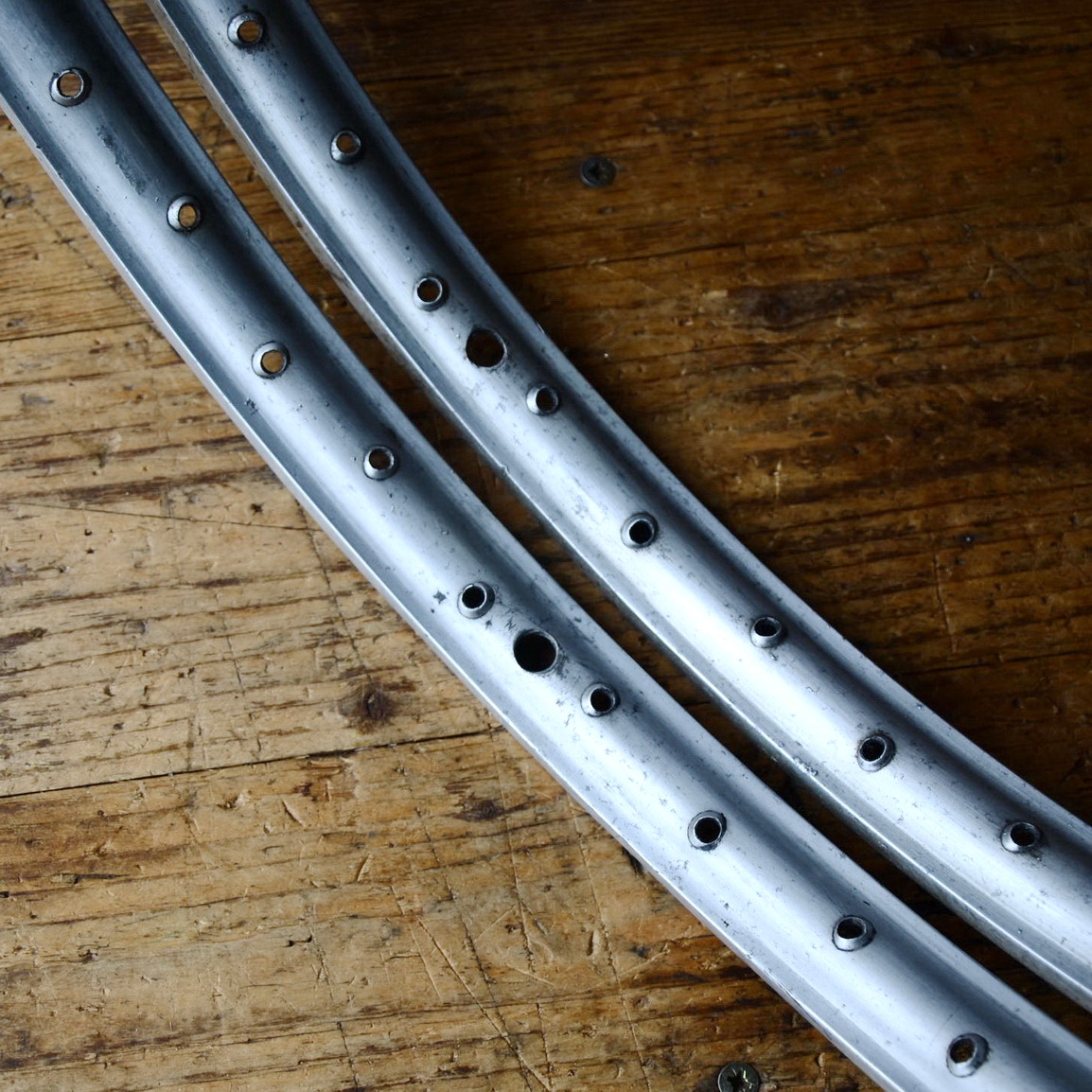 Felgensatz 23 x 2,00, Aluminium mit Patina, 36 Loch, gebraucht 50er Jahre, , technisch gut.