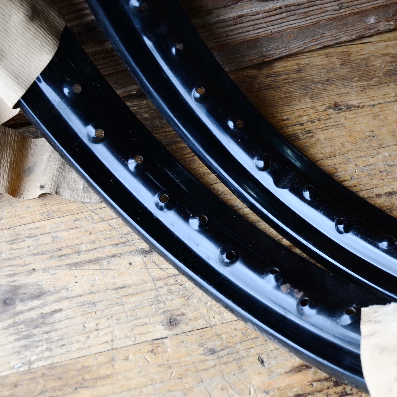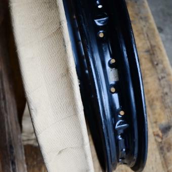 Felgensatz Motorrad, 19 Zoll, schwarz lackiert, Breite 71 mm, NOS, Lagerpatina