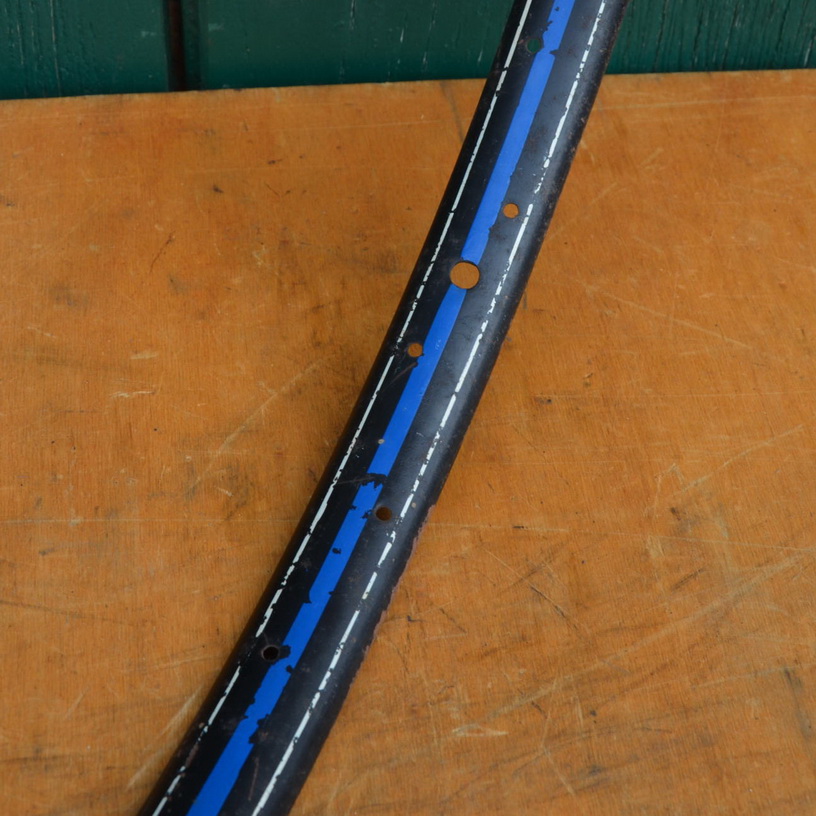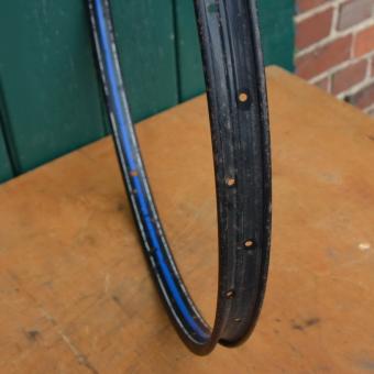 Wulstfelge 26 x 1 ½, 36-loch, Breite 33 mm, Linierung blau/weiß, Aussendurchmesser ca. 590 mm, passend gebohrt für 2mm Speichen, Auch passend für Schweizer Militärrad (Ordonanzrad)