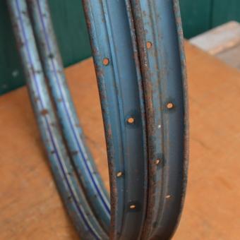 Wulstfelgensatz 26 x 1 ½, 36-loch, Breite 33 mm, blau metallic, Linierung blau/weiß, Aussendurchmesser ca. 590 mm, passend gebohrt für 2mm Speichen, Auch passend für Schweizer Militärrad (Ordonanzrad)
