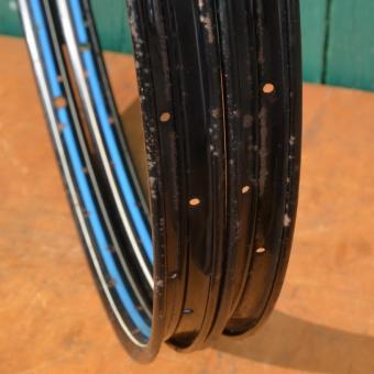 Wulstfelgensatz 26 x 1 ½, 36-loch, Breite 33 mm, schwarz, Linierung blau/weiß, Aussendurchmesser ca. 590 mm, passend gebohrt für 2mm Speichen, Auch passend für Schweizer Militärrad (Ordonanzrad)