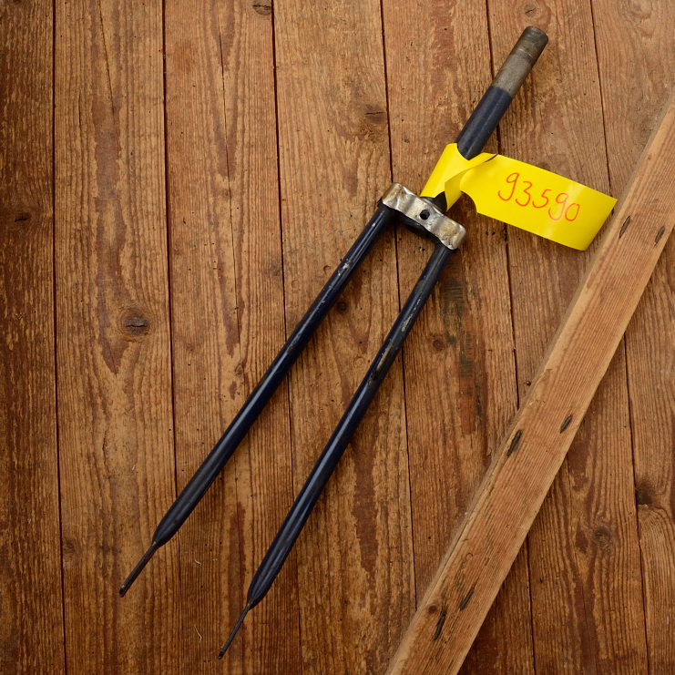 Gabel 28" orig. 70er J. unrestauriert, Schaftlänge 201 mm, Scheidenlänge 385 mm, Weite oben 54 mm, Zustand siehe Bilder
