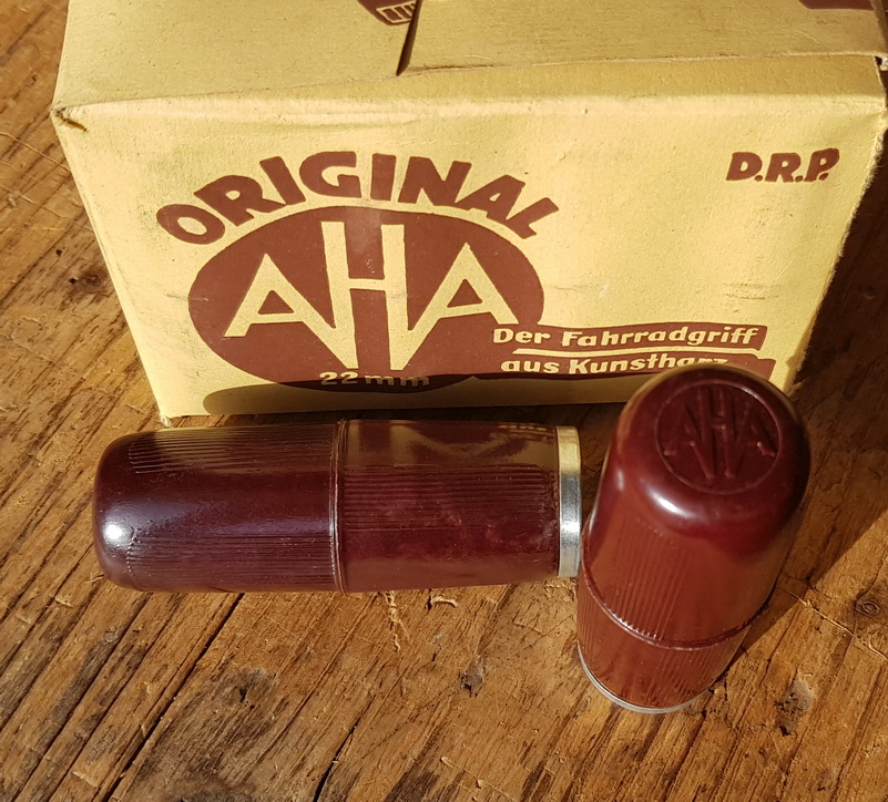 Bakelit - Fahrradgriff "AHA", mahagonifarben, 22mm, orig. Altbestand, erste Ausf. 30/50er J.