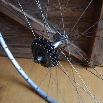 Hinterrad 28 Zoll, 4-fach, Hohlkammerfelge Alu poliert, geöst, (f. Schlauchreifen) 32-Loch, Breite 22 mm, Ventilloch 6 mm, Einbaumaß 125 mm