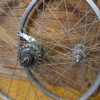 Laufradsatz 24 Zoll (507-19) "Grünert" Alufelgen, Speichen verzinkt, 36-Loch, Beite 25 mm, Nabe "Shimano Spectro" 7-Gang mit Griff, Einbaumaß 100/130 mm, Ventilbohrung 8,5 mm