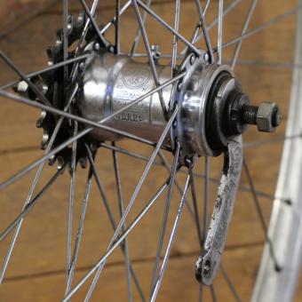 Hinterrad mit WEINMANN-Felge 26 Zoll (559), Alu, Breite 27 mm, F&S Torpedo-Nabe verchromt von 1940