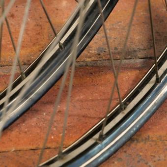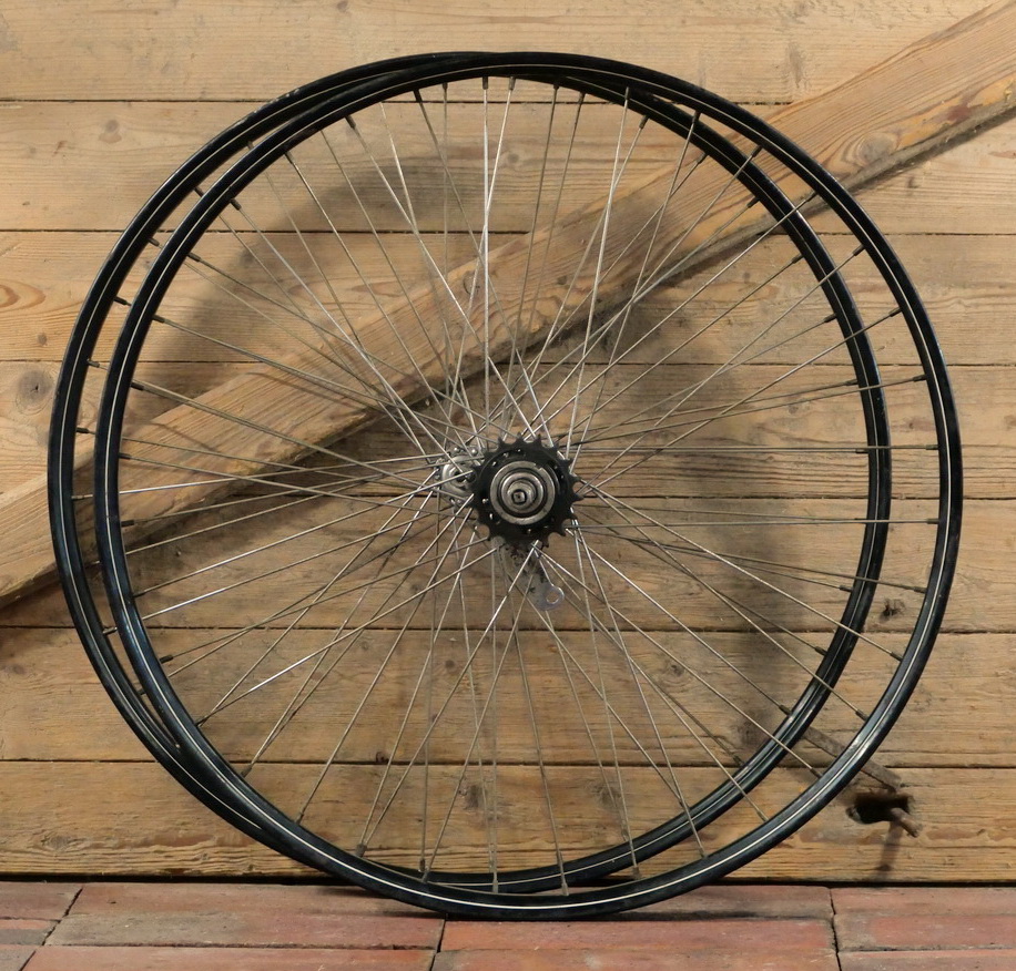 Laufradsatz 26 Zoll (559) für Drahtbereifung, 1952, Felgenbreite ca. 35 mm, schwarz, Linierung silber/weiß,