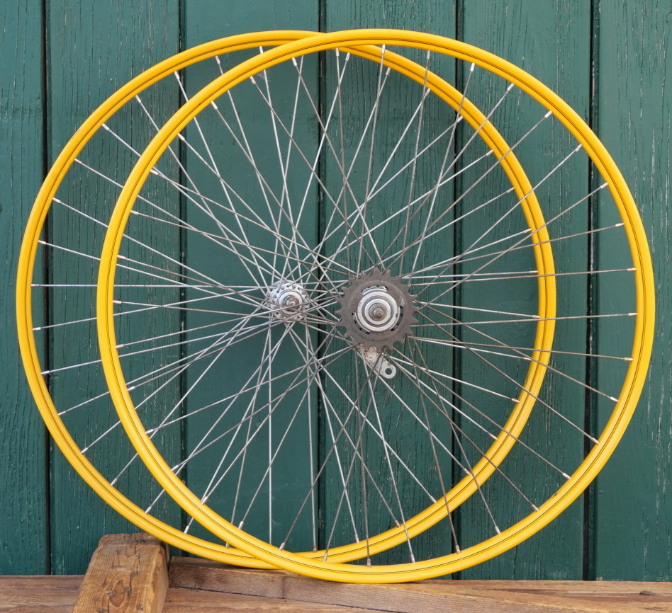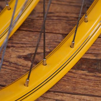 Laufradsatz 26 Zoll (559) für Drahtbereifung Ballonrad, 1934, Felgenbreite ca. 36 mm, gelb,