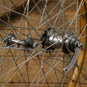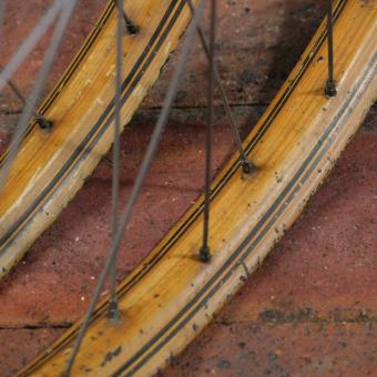 Laufradsatz 26 Zoll (559) für Drahtbereifung Ballonrad, 1936, Felgenbreite ca. 39 mm, Holzdekor,