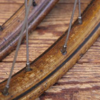 Laufradsatz 26 Zoll (559) für Drahtbereifung Ballonrad, 30er J., Felgenbreite ca. 35 mm, Holzdekor,