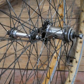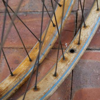 Laufradsatz 26 Zoll (559), für Drahtbereifung Ballonrad, original 1935, Felgenbreite ca. 38 mm, Holzdekor,