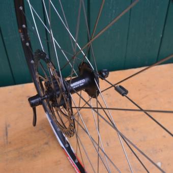 Vorderrad 26 Zoll (559-19) 1X24 Ready, Breite 24,5 mm, Ventilbohrung 8,5 mm, Hohlkammerprofil, Einbaumaß 100 mm, Scheibenbremse, 32-Loch, Nabe Shimano HB-M475