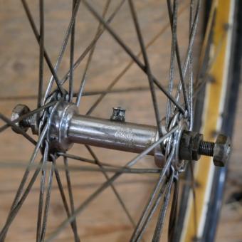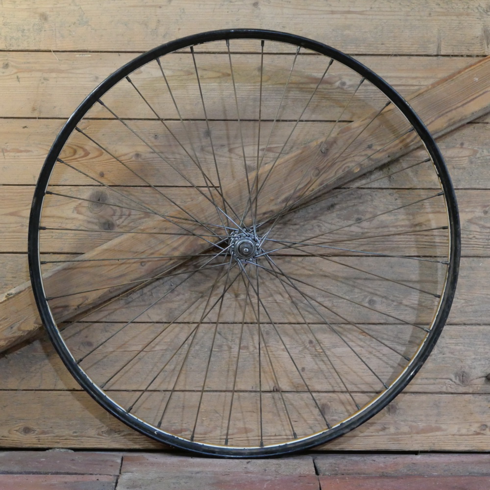 Vorderrad 26 Zoll (559), für Drahtbereifung Ballonrad, original 30er J., Felgenbreite ca. 38 mm, schwarz,