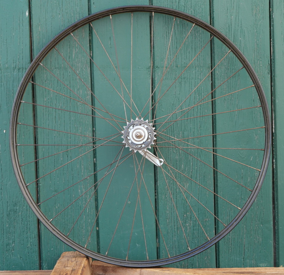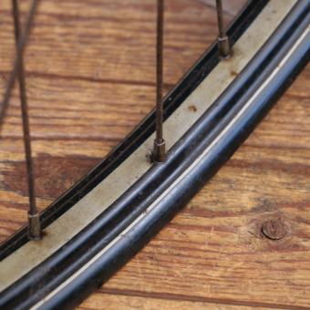 Hinterrad 28 Zoll (622) für Drahtbereifung, Bj. 1949, schwarz, Linien silber/weiß, Breite ca. 35mm,