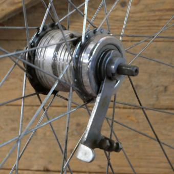 115 mm, 36 Loch, 2mm Chrom-Speichen, gebraucht mit schöner Patina, Zustand gemäß Fotos