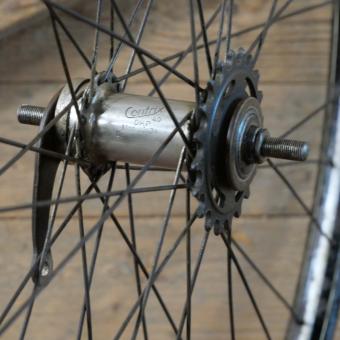 Hinterrad für Wulstbereifung 28 Zoll (635), 1949, Felge schwarz, Linien blau/weiß, Breite ca.