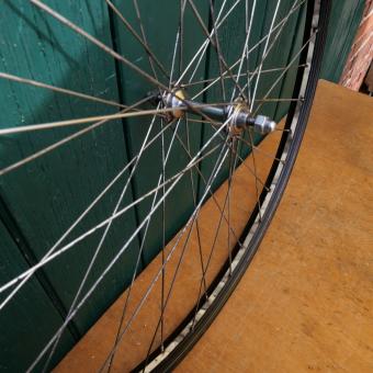 Laufrad 28 x 1,75 Vorderrad, Breite 36 mm, schwarz, Linierung weiß geflammt/gold, Einbaumaß 90 mm, 50er Jahre