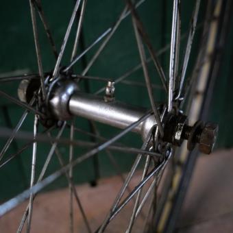 Laufrad vorn 28 x 1,75 für Drahtbereifung, Linierung gelb/blau/weiss, Breite ca. 37 mm, mit Patina, Einbaumaß ca. 92 mm