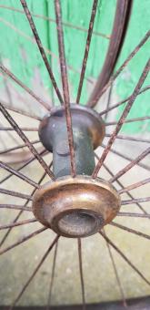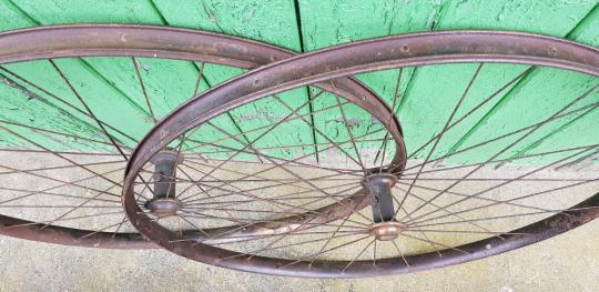 Laufradsatz für ca. 1900 Dreirad, Lastenrad, gr, Karren o.ä., 28 Zoll Wulstfelgen, Naben f. Steckachsen (innen ca. 20 mm) , radial eingespeicht, brauchbarer Originalzustand