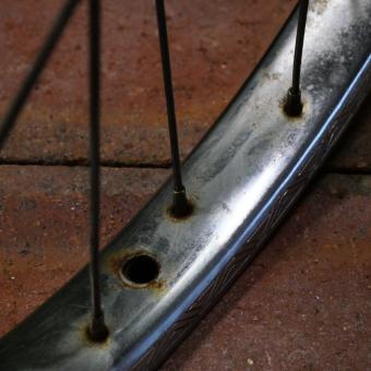 Hinterrad 20 Zoll (406), für Drahtbereifung, Stahl-Felge verchromt, original 60er/70er J., Breite ca. 33 mm,