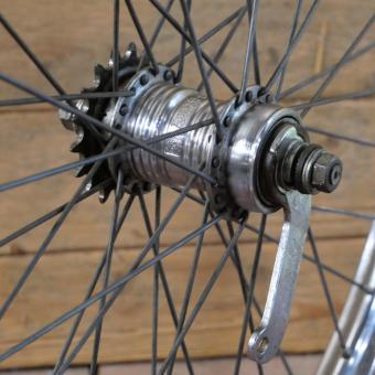 Hinterrad, 22 x 1 3/8, 70er/80er J., Westwood-Felge verchromt, Breite 34 mm, Nabe F&S Torpedo mit