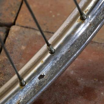 Steckritzel 17 Zähne, Einbaumaß ca. 108 mm, 2,34 mm Speichen verzinkt, gebraucht mit Patina,