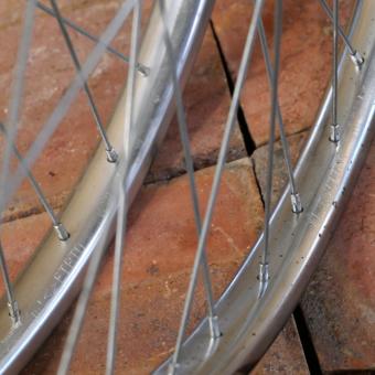 Laufradsatz 22 x 1 3/8 (489) für Drahtbereifung, original 80er J., SCHÜRMANN Felgen verchromt, Breite ca. 28 mm,