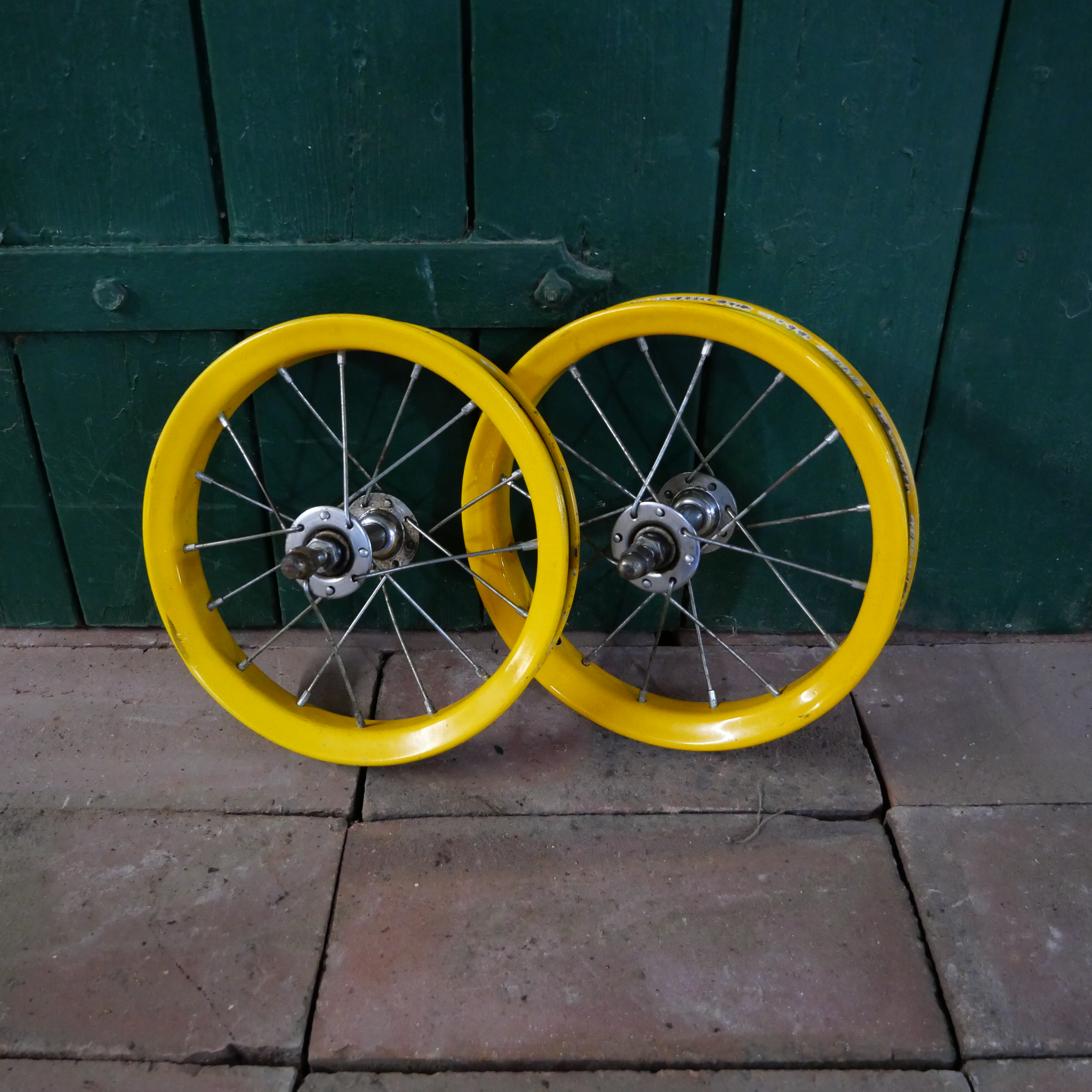 Laufradsatz für Kinderroller, 80/90er Jahre, Außendurchmesser ca. 220 mm, Felgenbreite 34 mm