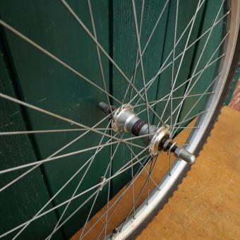 Vorderrad bereift 24 Zoll, (507-19), Alufelge, Breite 25 mm, Speichen verzinkt, Bereifung "Barum Rubena" 24 x 1,90, guter Zustand