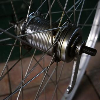 Hinterrad, 26 Zoll (559mm), original 60er/70er J., WEINMANN Alu-Felge silber, Breite ca. 26mm, Torpedo Mod. 515 3-Gang Nabe, Einbaumaß ca. 117mm, 2mm Niro-Speichen, ein paar Gebrauchs- u. Lagerungsspuren, Zustand gemäß Fotos