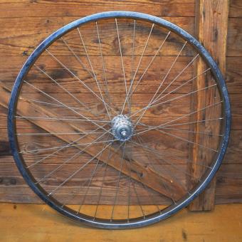 Laufrad hinten 26 x 1.90, "Rigida" verchromt, 36-Loch, Ventilbohrung 8,5 mm, Einbaumaß 126 mm, Breite 32,5 mm, Nabe "F&S" mit Lagerpatina