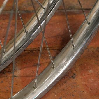 Bremsklaue 13 mm, Speichen 2 mm verchromt, gebraucht mit schöner Patina, technisch o.k., Zustand gemäß Fotos