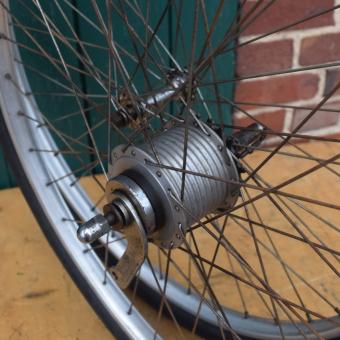 Laufradsatz 26 Zoll bereift. Alu-Felgen, Breite 30 mm, Bereifung 26 x 1,75 "Kenda", Sachs-Torpedo 3-Gang Nabe Modell 53 Alu (Dicke Berta), Mit Oberrohr-Schalthebel und Gestänge, Einbaumaß ca. 90/115