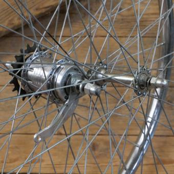 Breite 26 mm, Nabe vorn Union verchromt, Nabe hinten F&S Torpedo 3-Gang, Mod. S mit Steckritzel 20