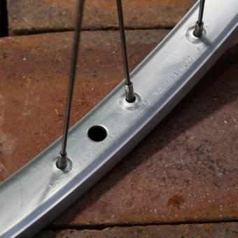Alu, Vollachse, Einbaumaß ca. 100 mm, 2 mm Speichen rostfrei, alte Neuware mit leichten