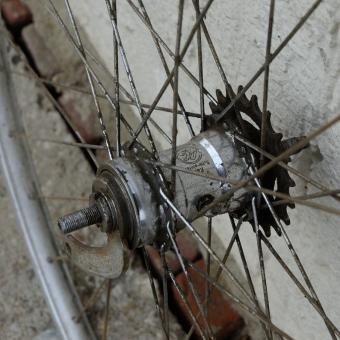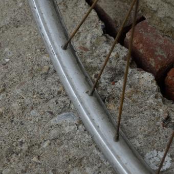 Hinterrad, 28 " (622-24), Alu "SCHÜRMANN", 28mm breit, Nabe F+S (B) , gebraucht Speichen verchromt, Einbaumaß: 110mm, Speichen rostig