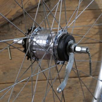 Hinterrad, 28 Zoll (622), 80er/90er J., Felge RUHRWERK verchromt, Breite ca 28 mm, Nabe F&S Penta Sport 5-Gang, 2-zügig mit Steckritzel 19 Zähne, Einbaumaß ca. 120 mm, 2mm Speichen nirosta, leicht gebraucht, guter Zustand gemäß Fotos