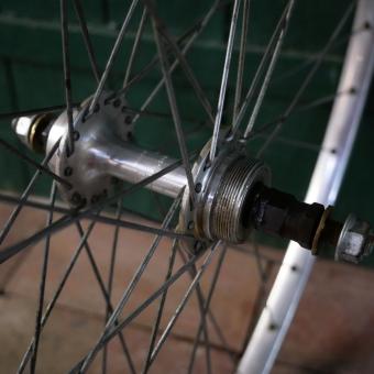 MAILLARD Alu-Nabe für Schraubkranz, Einbaumaß ca. 126mm, 2mm Zink-Speichen, alte Neuware mit leichten
