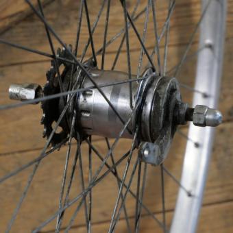 Mod. S mit Steckritzel 20 Zähne, Einbaumaß ca. 108 mm, 36 Loch, 2 mm Speichen verzinkt, gebraucht