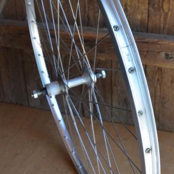 Laufrad 28 x 1 1/8 (622x18) hinten, Alufelge "Schürmann" 80er Jahre, Breite 22 mm, Nabe Maillard Helicomatic, Einbaumaß 125 mm