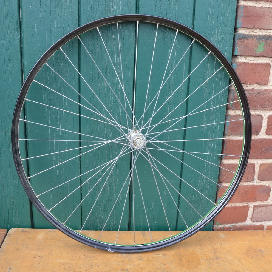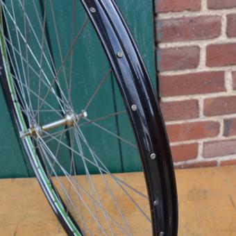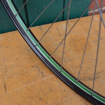 Laufrad 28 x 1,75, Nabe "Weco", Linierung grün/weiß, Felgenbreite 35 mm, Speichen verzinkt, Einbaumaß 95 mm