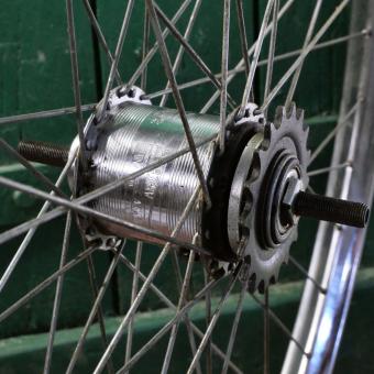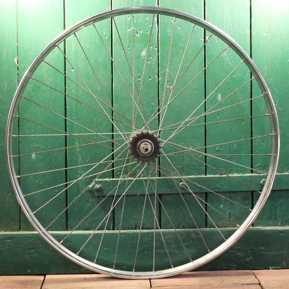Laufrad hinten, 28 Zoll (635mm), Westwood chrom "Raleigh", Breite ca. 37mm, Sturmey Archer 3-Gang