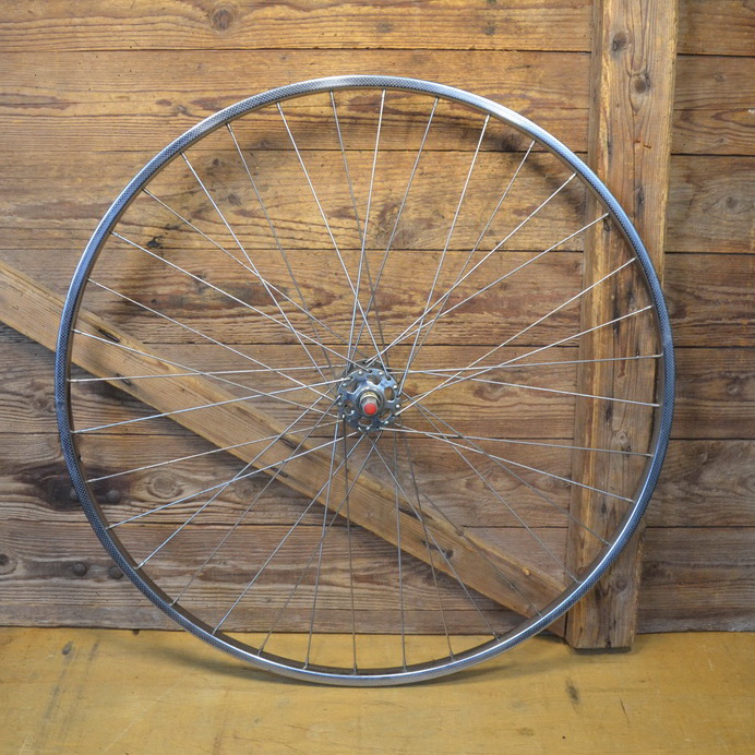 Laufrad vorn 28 x 1 ¼ Felge "Schürmann", mit Patina, 36-Loch Bohrung, Hochflanschnabe