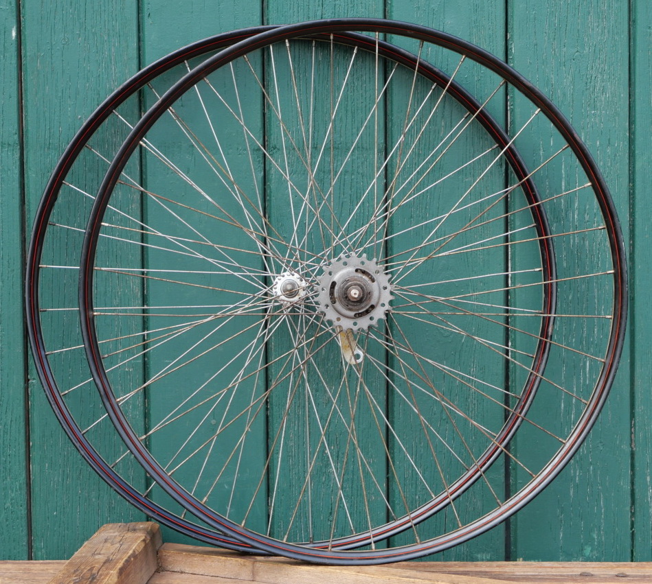 Laufradsatz 28 Zoll (622) für Drahtbereifung, 60er J., Felgenbreite ca. 36 mm, schwarz,