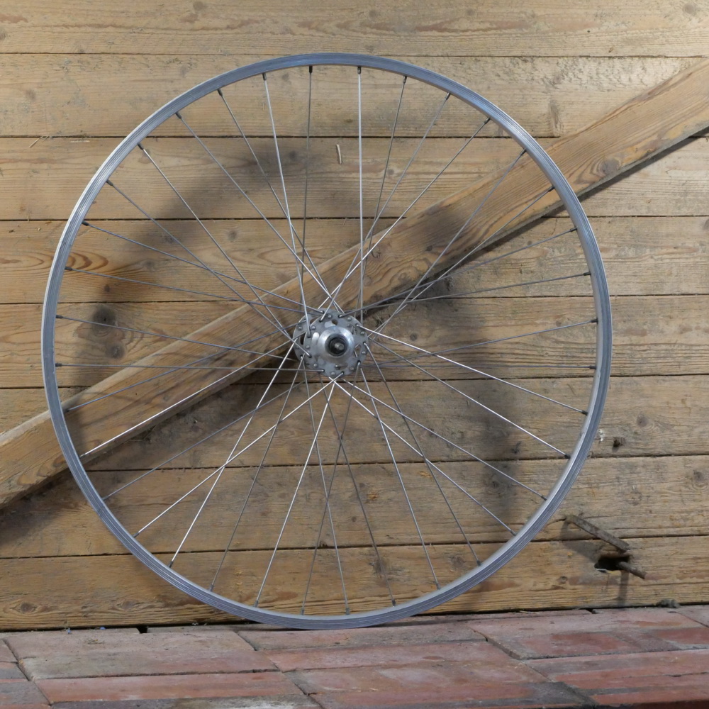 Vorderrad mit SCHÜRMANN-Felge, Alu, 28 Zoll (622), 80er J., Breite ca. 25 mm, Nabe Maillard