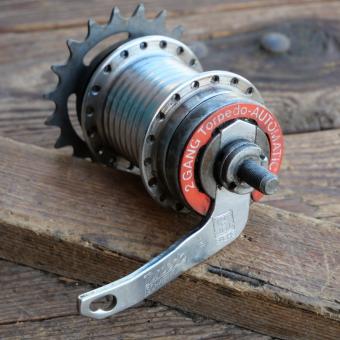 Nabe Hinterrad Fahrrad, F&S Automatic 2-Gang, 70er/80er J., für 20-24 Zoll-Räder, mit Steckritzel 19 Zähne, Einbaumaß ca. 114 mm, 36 Loch, neuwertig mit leichter Patina, technisch top, Zustand gemäß Fotos